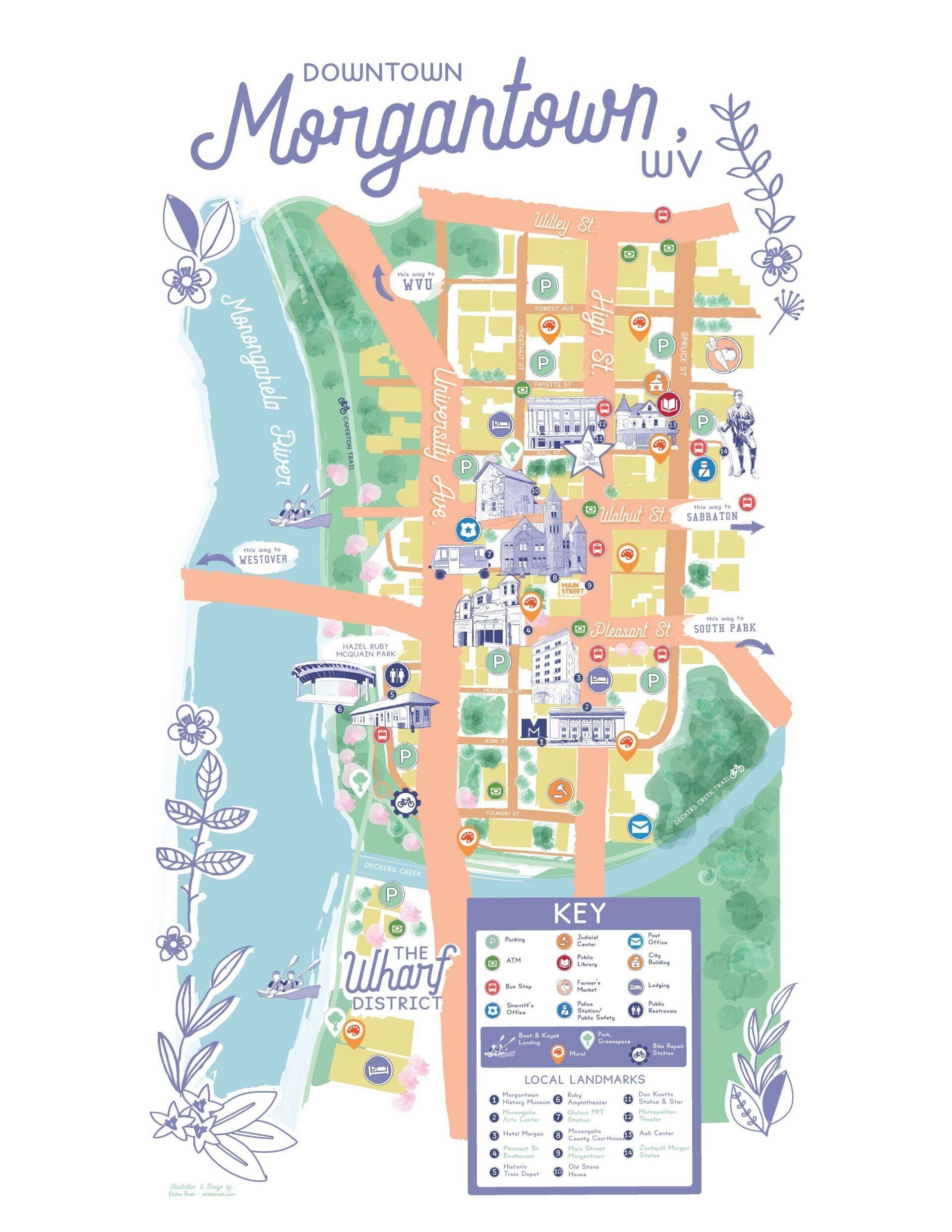 Map design and illustration for Mainstreet Morgantown